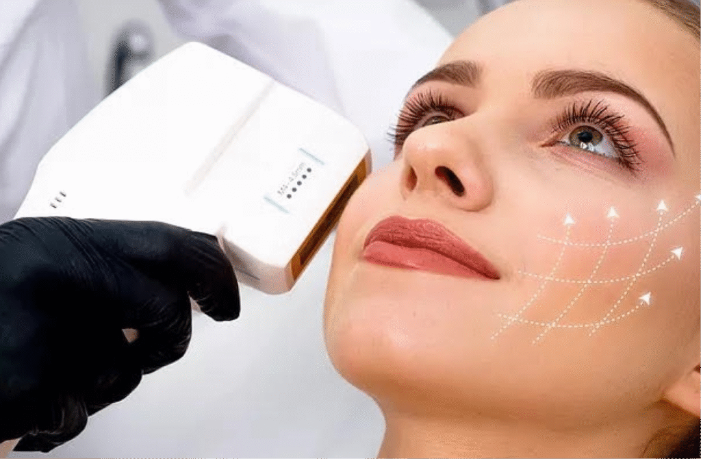 Focused ultrasound targets deep foundational skin layers to contract tissue and generate new collagen. Effectively tightens loose skin on the face, neck, and décolletage, resulting in a tighter jawline and improved contour.